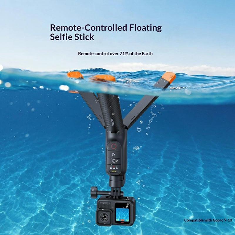 • Telesin S1-TSS-07 Schwimmender Selfie-Stick / ausziehbares Unterwasser-Stativ mit Bluetooth-Fernbedienung für GoPro Max/Hero13/Hero12/Hero11/Hero10/Hero9