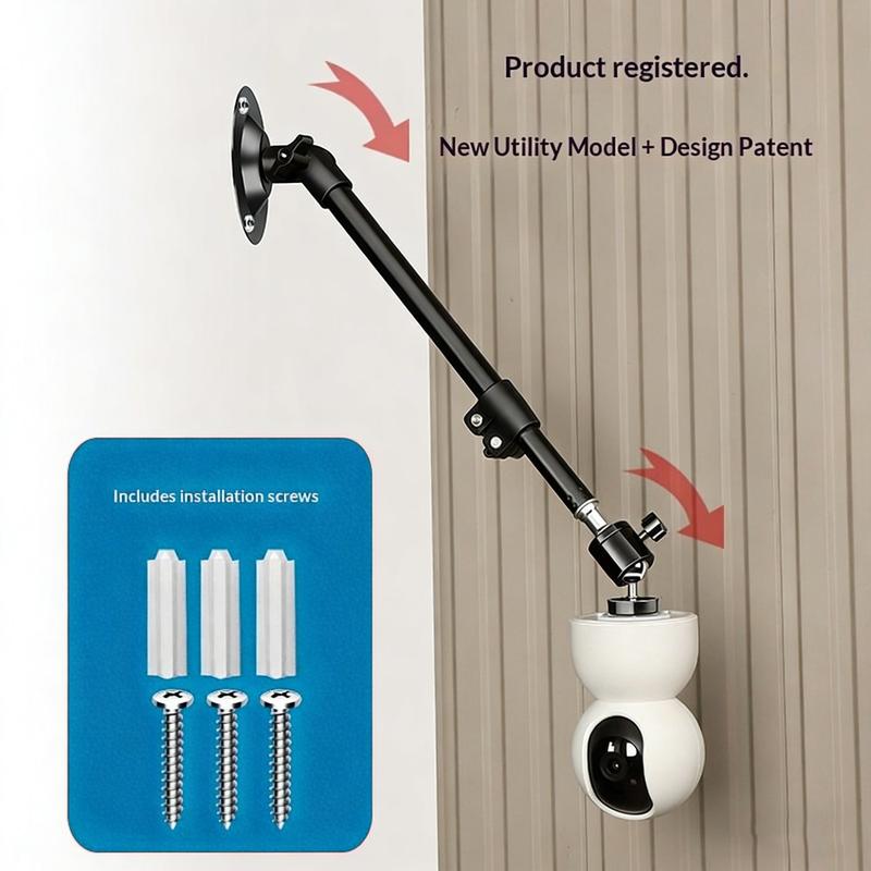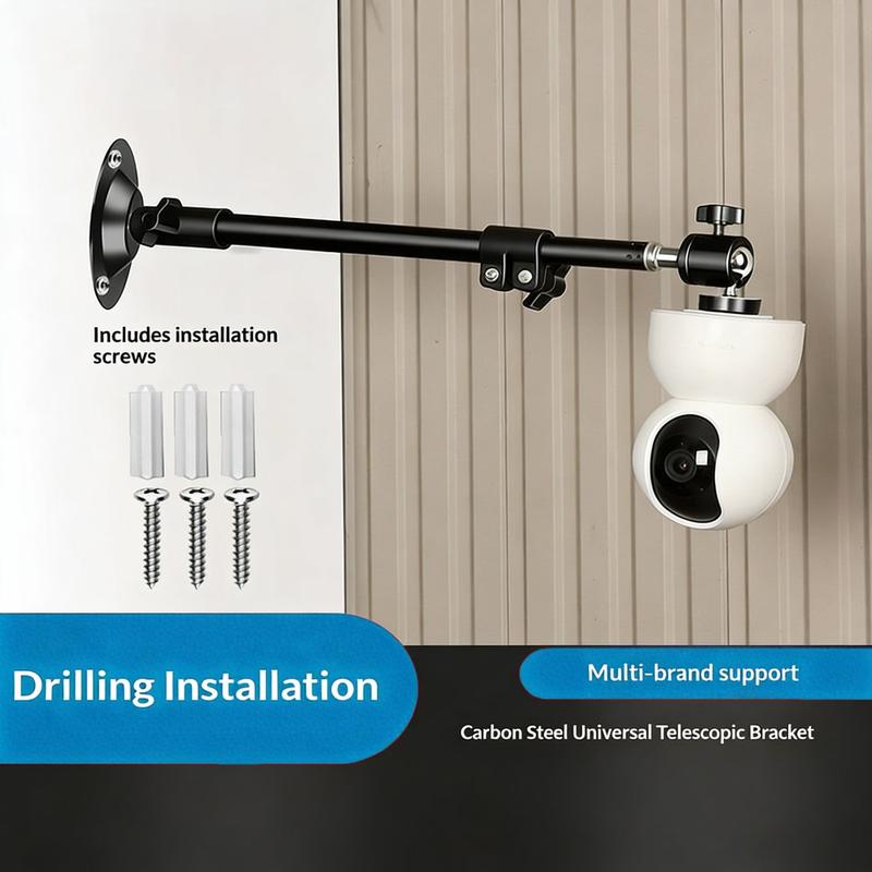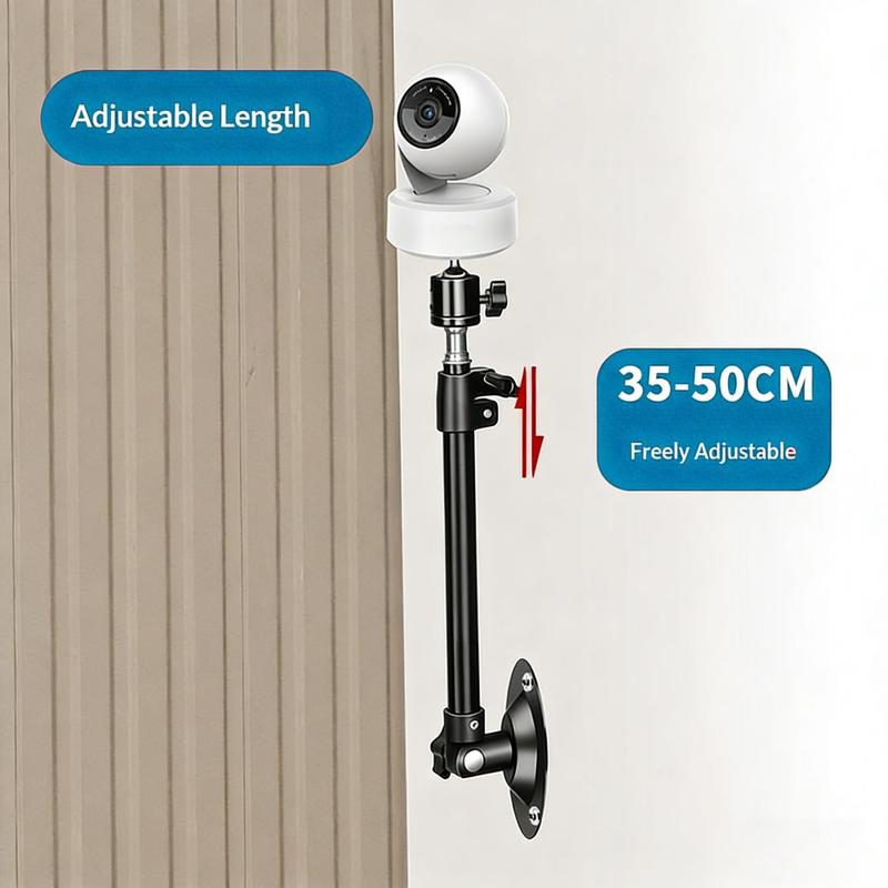 Die Halterung verfügt über einen stufenlos verstellbaren Teleskoparm von 35 bis 50 cm, der sich leicht an unterschiedliche Installationsabstände anpassen lässt. Dank dieser Flexibilität können die Kameras ohne zusätzliche Verlängerungen genau dort positioniert werden, wo sie benötigt werden.