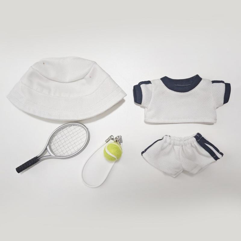 Tennis-Outfit für Labubu-Puppe 17cm - 5 Teile. - T-Shirt, Shorts, Hut, Tennisschläger, Tennisball-Anhänger