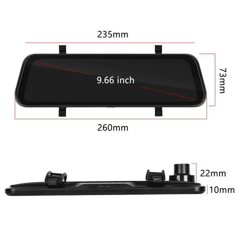 904 9.66" Touchscreen Dash Cam mit CarPlay - Vollbild-Streaming Rückspiegel 4K und 1080P Dual Lens DVR