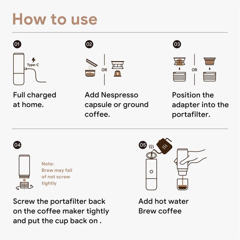 - Bequemlichkeit: Das tragbare und kabellose Design ermöglicht es Ihnen, jederzeit und überall hochwertigen Kaffee zu genießen.