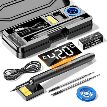 Dieses kompakte Löt-Set vereint Mobilität, Komfort und Vielseitigkeit in einem Gerät. Dank des wiederaufladbaren Designs ist keine ständige Stromversorgung erforderlich, während die digitale Temperaturregelung und die austauschbaren Spitzen es Ihnen ermöglichen, eine Vielzahl von Lötarbeiten zu erledigen. Es eignet sich besonders für Hobbybastler und Anwender, die eine einfache Lötlösung für alltägliche Reparaturarbeiten suchen.