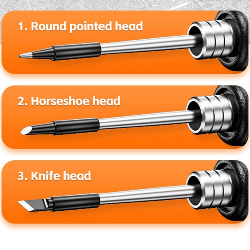- Enthält drei austauschbare Spitzen: rund, spitz, Hufeisen und Messer