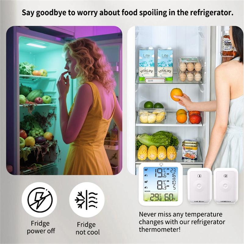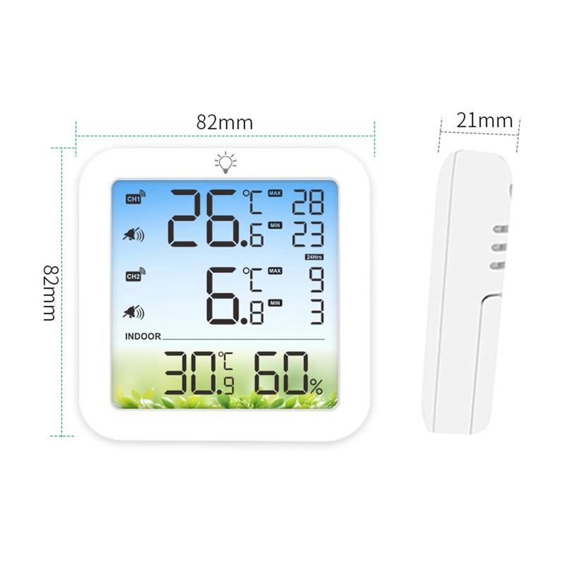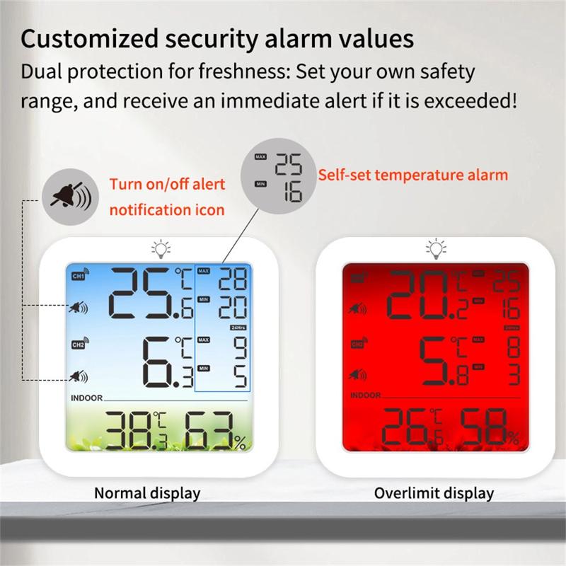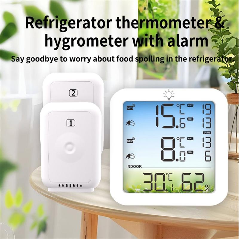 TS-8082 Zweikanal-Funk-Thermometer und -Hygrometer - Temperaturüberwachung für Kühl- und Gefrierschränke mit 2 Sensoren und Alarmfunktion
