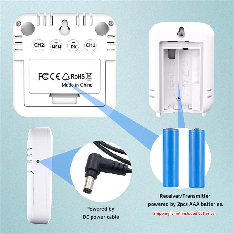 - Stromversorgung des Empfängers: Gleichstromkabel oder 2 x AAA-Batterien (nicht im Lieferumfang enthalten)