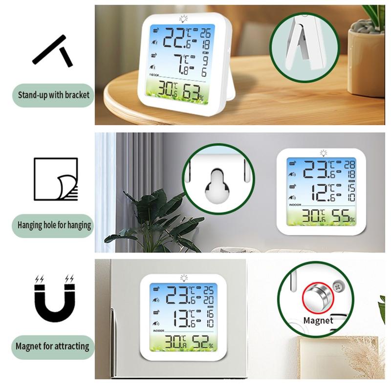 Das übersichtliche Display zeigt Temperatur- und Feuchtigkeitsdaten an, während der anpassbare Hoch- und Tiefalarm Sie warnt, wenn die Messwerte Ihren eingestellten Bereich verlassen. Mit einer Funkreichweite von bis zu 100 m im Freien, einer 24-Stunden-Maximal-/Minimalwert-Aufzeichnung und flexiblen Aufstellungsmöglichkeiten ist es eine nützliche Lösung für die Überwachung zu Hause, im gewerblichen Bereich und in Lagerräumen.