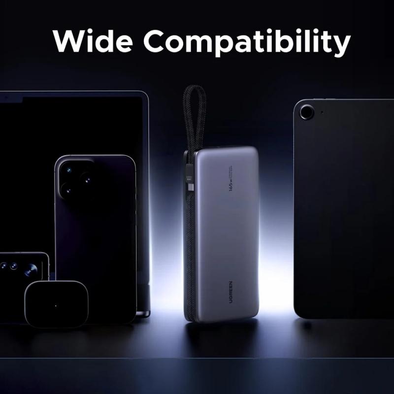 Die Ugreen PB552 ist eine leistungsstarke Powerbank für Vielnutzer, die auch unterwegs eine hohe Leistung benötigen. Mit einer Kapazität von 25000mAh und einer Gesamtleistung von bis zu 165W kann sie Laptops, Tablets, Smartphones und Zubehör während Reisen, Remote-Arbeit, Besprechungen und langen Tagen unterwegs effizient aufladen. Zwei integrierte USB-C-Kabel sorgen für Ordnung und Einsatzbereitschaft, und dank der Möglichkeit, bis zu vier Geräte gleichzeitig aufzuladen, ist sie ein zuverlässiger All-in-One-Ladehub, den Sie überallhin mitnehmen können.