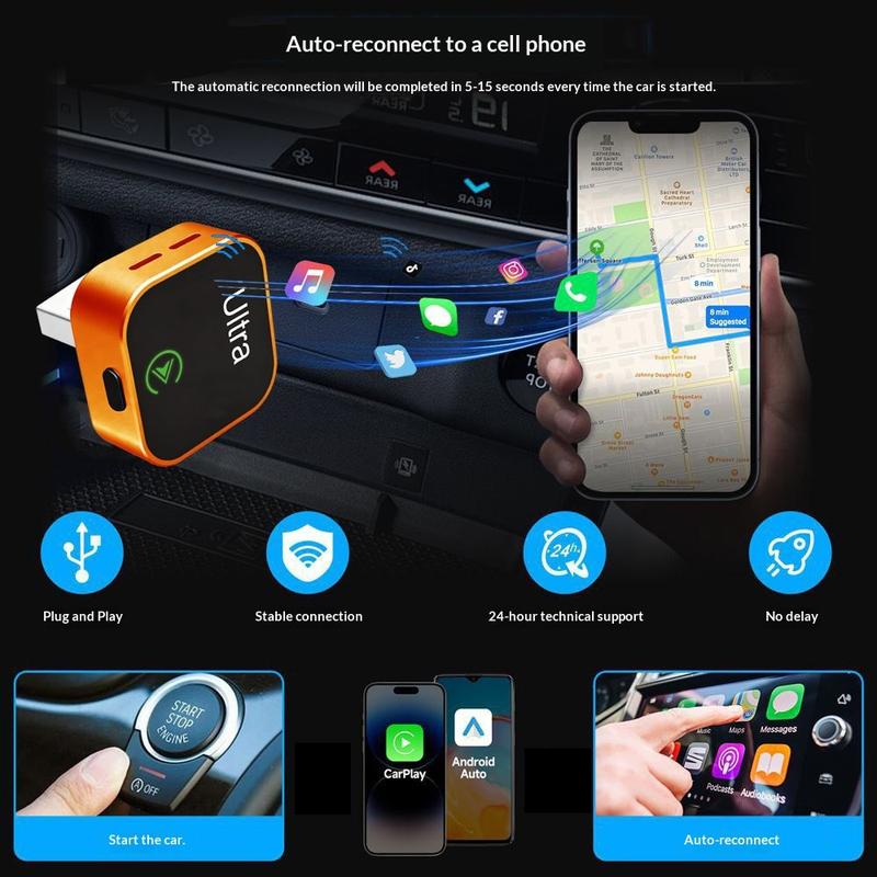 Vereinfachen Sie die Verbindung in Ihrem Auto mit dem kabellosen 2-in-1-Adapter Ultra K15 für CarPlay und Android Auto. Dieser kompakte USB-Dongle wurde entwickelt, um eine kompatible kabelgebundene CarPlay- oder Android Auto-Verbindung in eine kabellose umzuwandeln, sodass Sie Ihr Smartphone verbinden können, ohne bei jeder Fahrt ein Kabel anschließen zu müssen. Dank seiner geringen Größe und der Plug-and-Play-Funktion ist er eine praktische Ergänzung für den täglichen Weg zur Arbeit und den regelmäßigen Gebrauch im Auto.