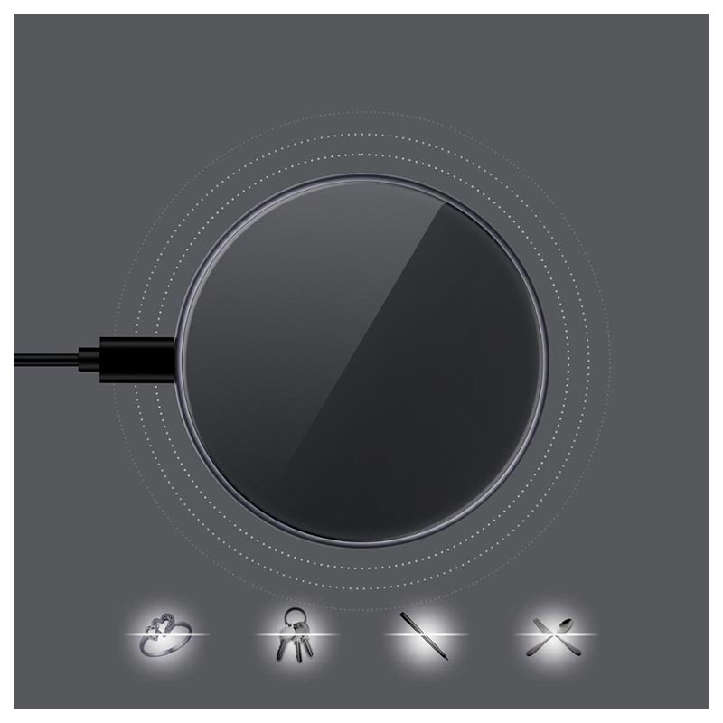 Erkennung von Fremdkörpern. Das kabellose Ladepad erkennt sofort alle unbekannten Gegenstände wie Schlüssel, Stifte, Schmuck usw. und stoppt den Ladevorgang, um Überhitzung zu vermeiden und Ihre teuren Smartphones zu schützen.