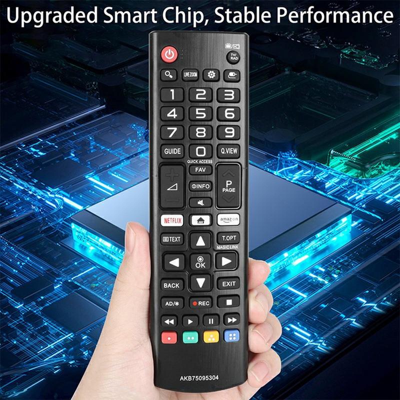Diese Fernbedienung AKB75095304 ist der ideale Ersatz für Ihre LG TV-Fernbedienung - einfach einzurichten, langlebig und zuverlässig. Egal, ob Ihre Originalfernbedienung verloren gegangen, kaputt oder einfach abgenutzt ist, dieser Ersatz stellt die volle Funktionalität ohne Probleme wieder her.