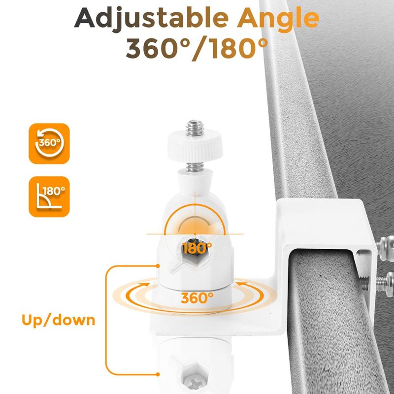 Universelle Halterung für Sicherheitskameras an Geländern und Dachrinnen - 360° verstellbare Aluminium-Schwenk-Neige-Halterung mit 1/4"-Schraube