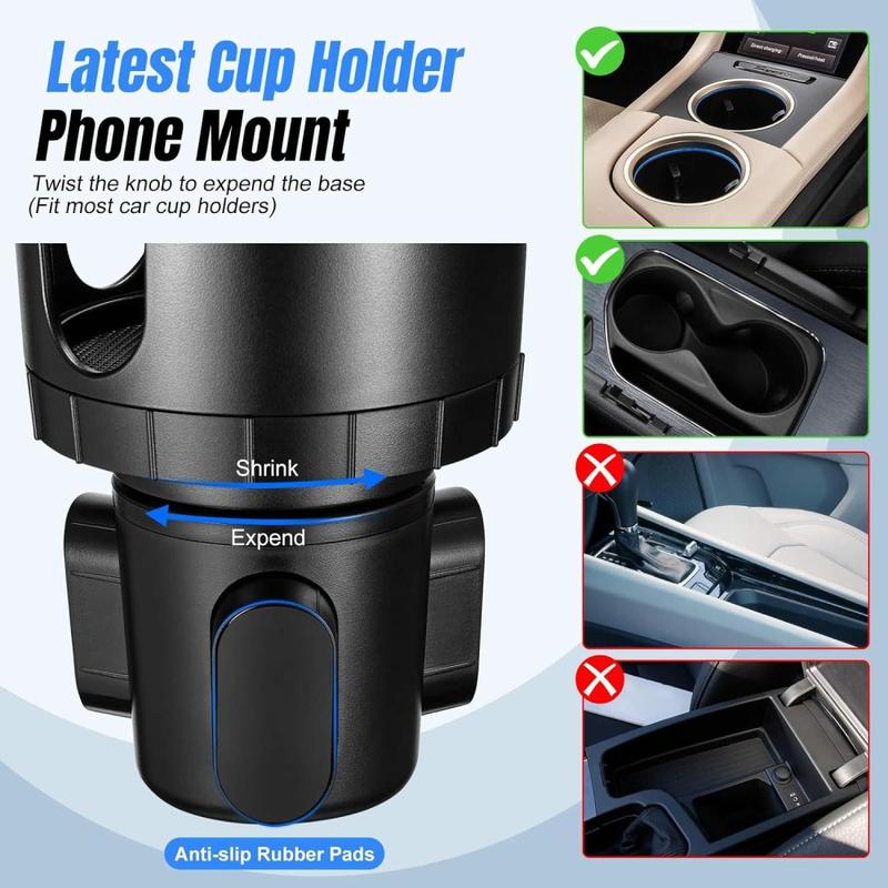 Mit dieser 2-in-1-Halterung für den Getränkehalter im Auto ist Ihr Smartphone sicher verstaut und Ihr Getränkehalter bleibt praktisch nutzbar. Sie kombiniert eine stabile Getränkehalterbasis mit einer verstellbaren Smartphone-Halterung und ermöglicht es Ihnen, Ihr Smartphone für Navigation, Anrufe oder die Musiksteuerung zu positionieren, während weiterhin Platz für Tassen, Flaschen oder Becher bleibt. Damit ist sie eine clevere Wahl für Autofahrer, die einen leichteren Zugriff auf ihr Smartphone wünschen, ohne Lüftungsschlitze zu verdecken oder Halterungen am Armaturenbrett oder an der Windschutzscheibe anzubringen.
