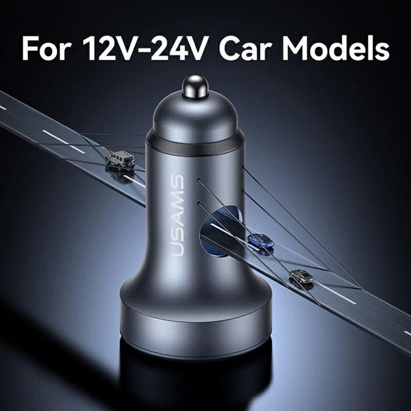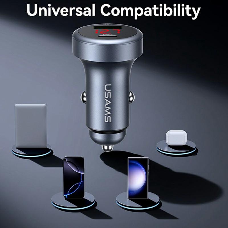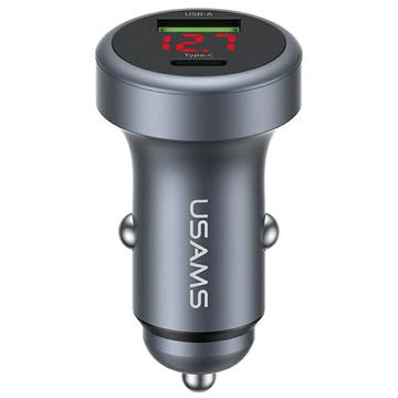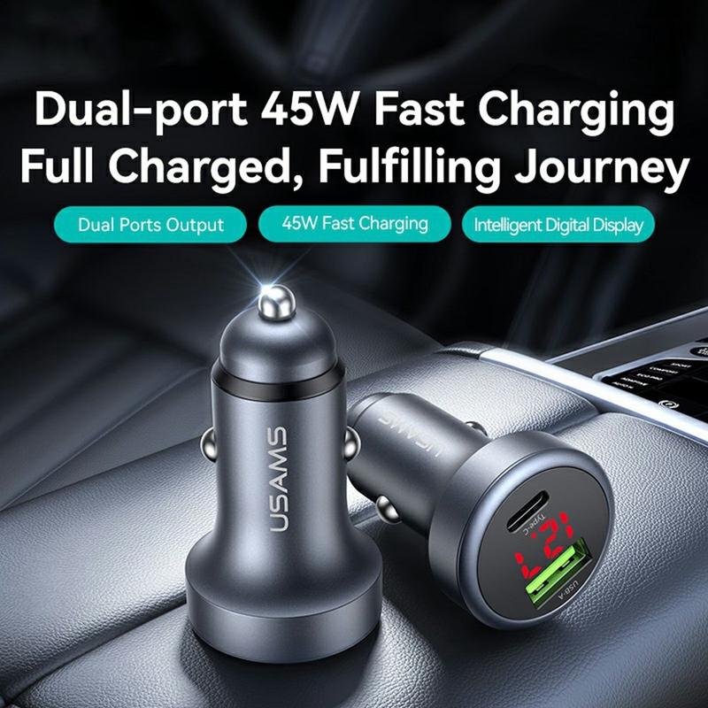 Usams CC327 C44 Dual-Port Autoladegerät - 45W Schnelllade-Aluminium-Adapter mit Spannungsanzeige