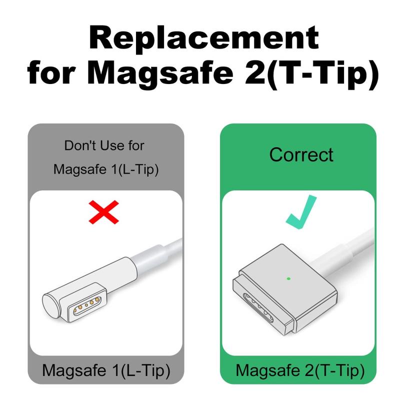 Dieses USB-C-zu-Magsafe-2-T-Tip-Kabel ist mit PD- und E-Mark-Chips ausgestattet, die Spannung und Strom intelligent anpassen und so ein sicheres und effizientes Laden ermöglichen. Es unterstützt eine Leistungsabgabe von bis zu 100W und eignet sich daher für eine Vielzahl von MacBook Pro-Modellen. Nur zum Laden - Datenübertragung und Videoausgabe werden nicht unterstützt.