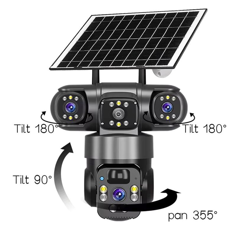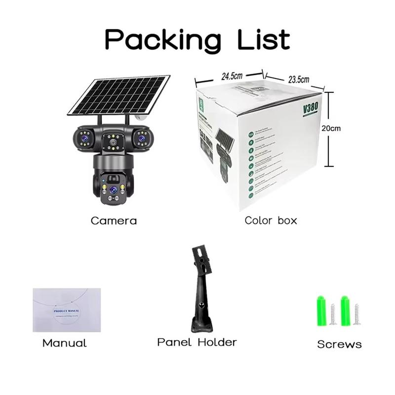• V380 Pro Solar 3-Objektiv-PTZ-WLAN-Überwachungskamera für den Außenbereich 2K - Personenerkennung, Zwei-Wege-Audio, IP67, H.265, TF/Cloud-Speicher