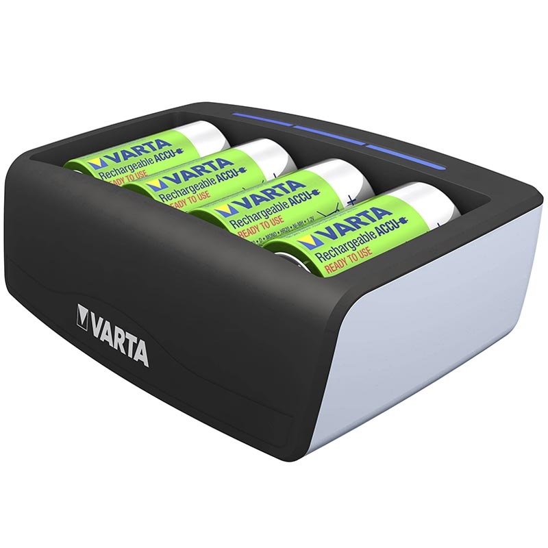 Halten Sie die Akkus Ihrer Spielzeuge und Werkzeuge mit dem Varta Easy Tischladegerät einsatzbereit. Mit dem Universal-Tischladegerät Varta Easy können Sie zwei oder vier AA/AAA/C/D-Akkus oder einen 9V-Akku aufladen. Es ist mit einem Sicherheitstimer ausgestattet, der die Ladevorgänge automatisch abschaltet, um ein Überladen zu vermeiden.