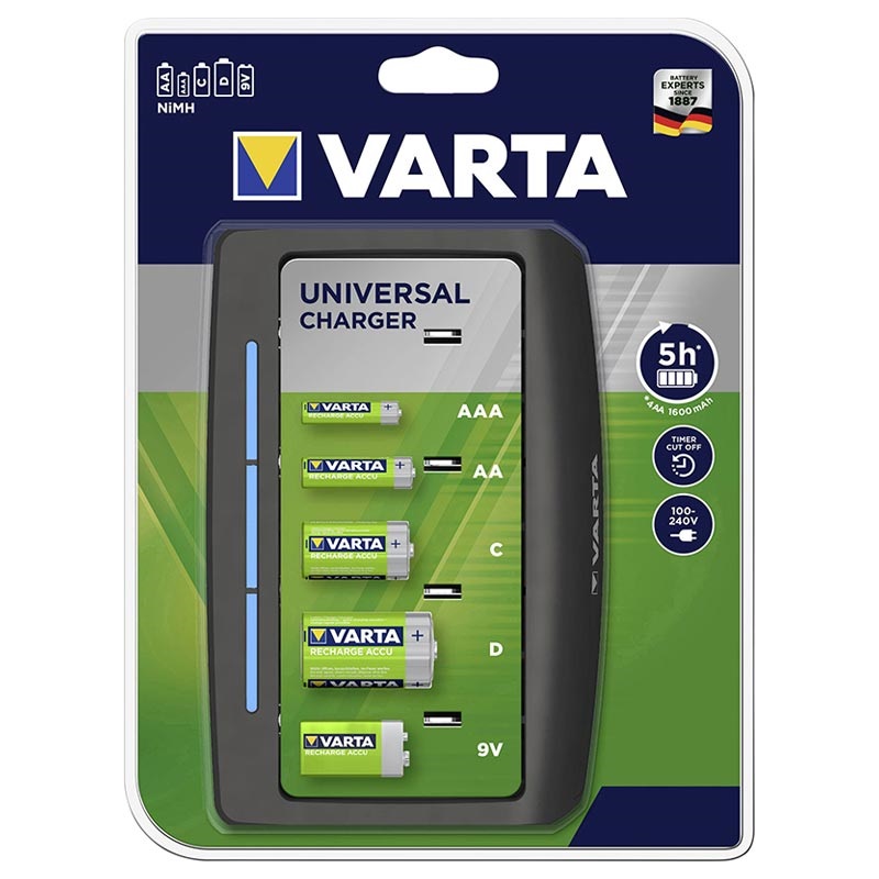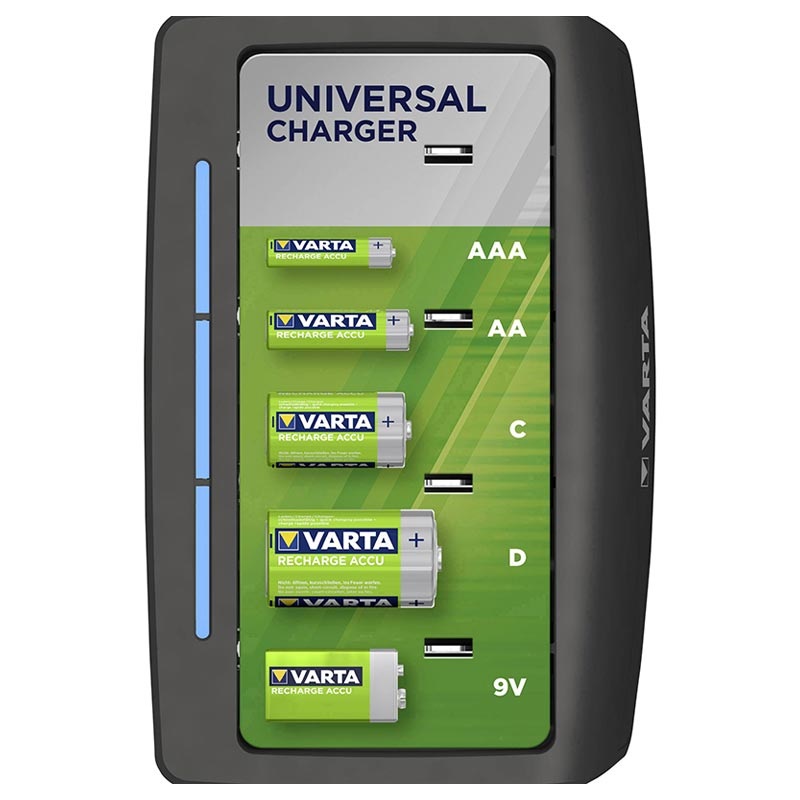 Varta Easy Universal Ladegerät für AA, AAA, C, D, 9V Aufladbare Batterien