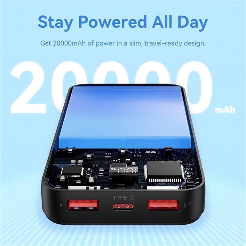 Mit einer Akkukapazität von 20000mAh bietet diese Powerbank genügend gespeicherte Energie für mehrere Ladevorgänge kompatibler Mobilgeräte. Sie ist eine nützliche Lösung für längere Tage ohne Zugang zu einem Ladegerät, egal ob Sie auf Reisen sind, im Homeoffice arbeiten, Veranstaltungen besuchen oder einfach nur eine Notstromversorgung bereithalten möchten. Powerbanks mit höherer Kapazität wie diese sind besonders praktisch für Nutzer, die mehr als ein Gerät mit sich führen oder den ganzen Tag über Strom benötigen.