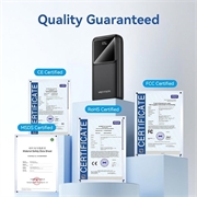 Dieses Modell unterstützt Schnellladen mit bis zu 22.5W, sodass kompatible Geräte schneller aufgeladen werden können, wenn es darauf ankommt. Schnellladen kann besonders nützlich sein, wenn Sie vor dem Verlassen des Hauses, während einer Pause bei der Arbeit oder auf Reisen schnell den Akku aufladen müssen. Mit USB- und Typ-C-Ausgängen bietet die Powerbank flexible Lademöglichkeiten für eine Vielzahl moderner Smartphones, Tablets und tragbarer Geräte.