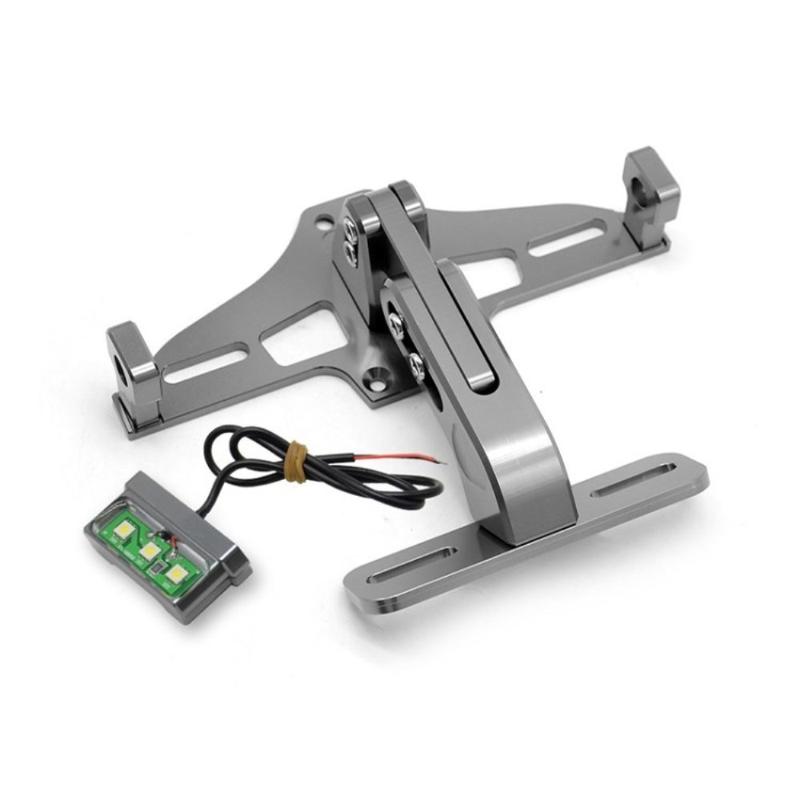 Verstellbare CNC-Aluminium-Legierung Motorrad-Kennzeichenhalterung Fahrrad Licht Teleskophalterung mit LED-Licht - Titanium Grey