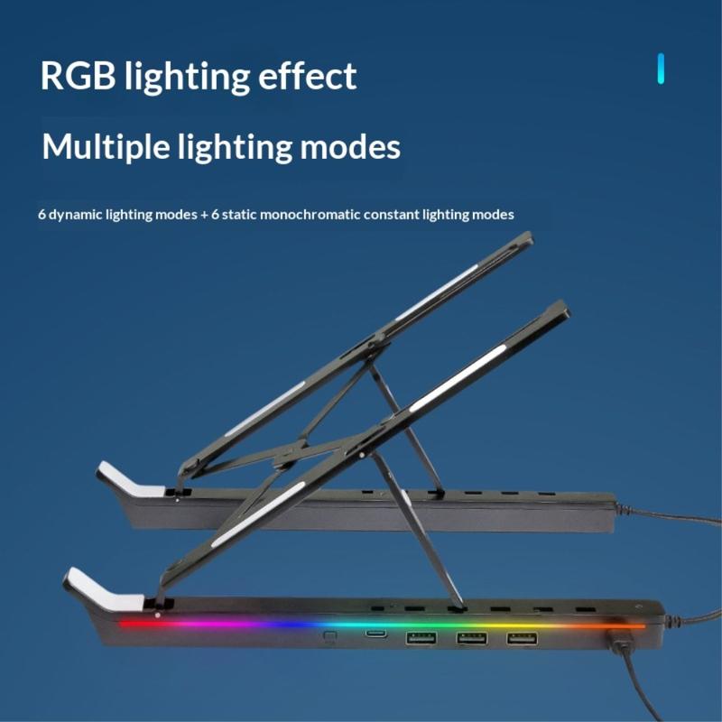 6-fach höhenverstellbarer Aluminium-Laptop-Ständer mit RGB-Hintergrundbeleuchtung und integriertem USB-Hub - faltbare Notebook-Halterung für 12-18" Geräte