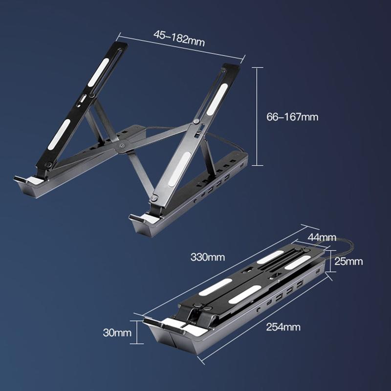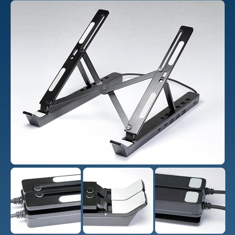 Dieser Laptopständer vereint ergonomischen Komfort, verbesserte Kühlung, zusätzliche Anschlussmöglichkeiten und modernes Design in einem vielseitigen Accessoire. Die verstellbare Höhe, der integrierte USB-Hub und die faltbare Struktur machen ihn zu einer ausgezeichneten Wahl für Benutzer, die sowohl Funktionalität als auch Stil in ihrem Arbeitsbereich wünschen.