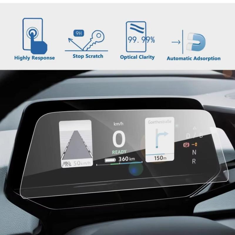 Sorgen Sie dafür, dass das Display Ihres Volkswagen ID.4X/ID.6X mit dieser passgenauen Displayschutzfolie aus gehärtetem Glas für den 5,3-Zoll-Bildschirm immer gut aussieht. Die Folie wurde für die Modelle 2021, 2022, 2023 und 2024 entwickelt und schützt das Original-Display vor Kratzern, Fingerabdrücken und täglicher Abnutzung, ohne die Berührungsempfindlichkeit oder Bildschirmklarheit zu beeinträchtigen.