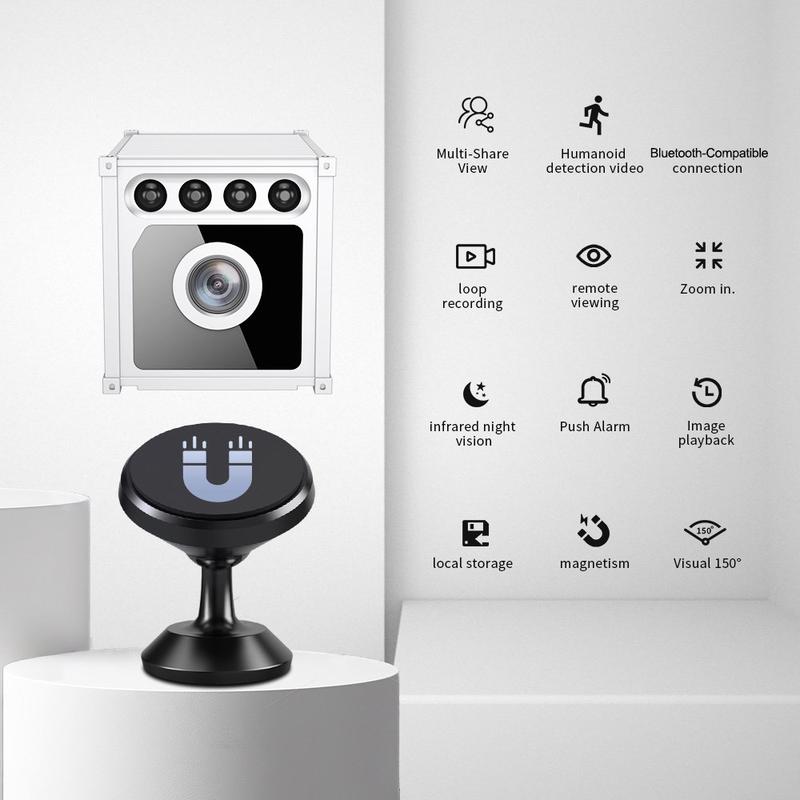 - Kompakte WLAN-Überwachungskamera für den Innenbereich mit Magnethalterung für flexible Platzierung
