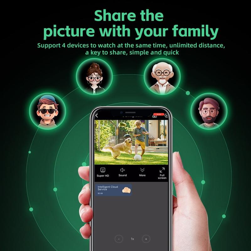 Das integrierte Mikrofon unterstützt Audioaufnahmen und Zwei-Wege-Kommunikation, während die Unterstützung sowohl für TF-Kartenspeicher als auch für Cloud-Speicher Ihnen mehr Flexibilität beim Speichern von Aufzeichnungen bietet. Die Infrarot-Schwarz-Weiß-Nachtsicht sorgt zudem für gute Sichtbarkeit bei Dunkelheit, sodass Sie die Überwachung auch bei ausgeschaltetem Licht fortsetzen können.