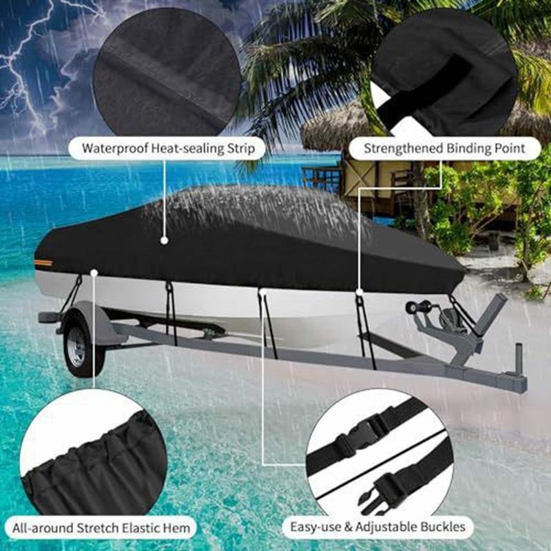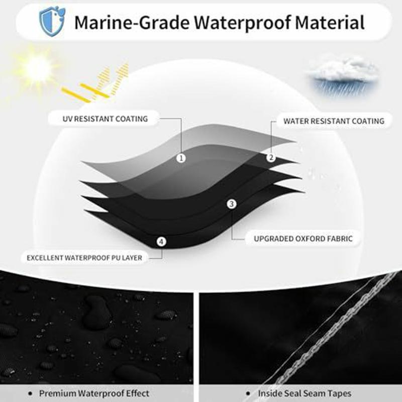 Wenn Sie eine einfache, effektive Möglichkeit suchen, das saubere Aussehen Ihres Bootes zu verlängern und die Wartung zu reduzieren, ist diese Abdeckung eine kluge Investition. Das PU-beschichtete 210D-Gewebe, die sicheren Gurte und der elastische Saum machen sie ideal für Besitzer, die eine zuverlässige Abdeckung für Lagerung und Transport benötigen - ohne komplizierte Montage oder sperrige Materialien.