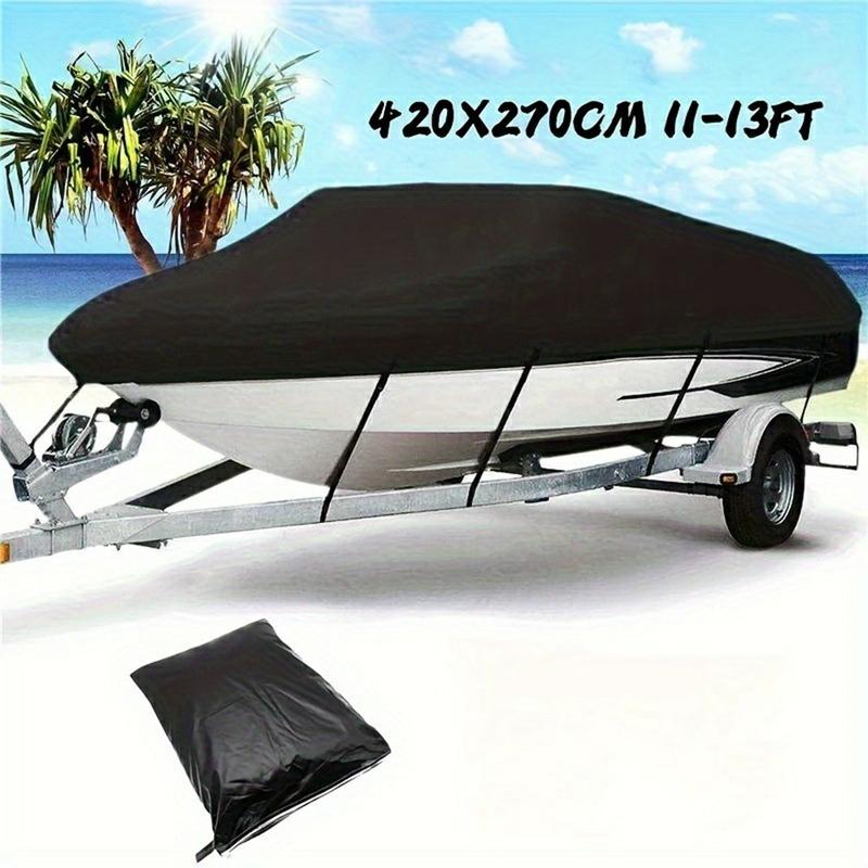 Wasserdichte 210D Abdeckung für 11-13 Fuß Boote (420 x 270cm) - PU-beschichtete Sonnen- und Wetterschutzabdeckung mit verstellbaren Riemen, Schnallen und Aufbewahrungstasche