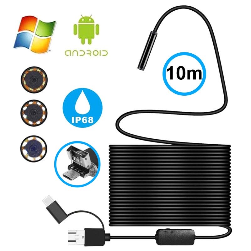 Wasserdichte 8mm-Endoskopkamera - USB, MicroUSB, Typ-C - IP68