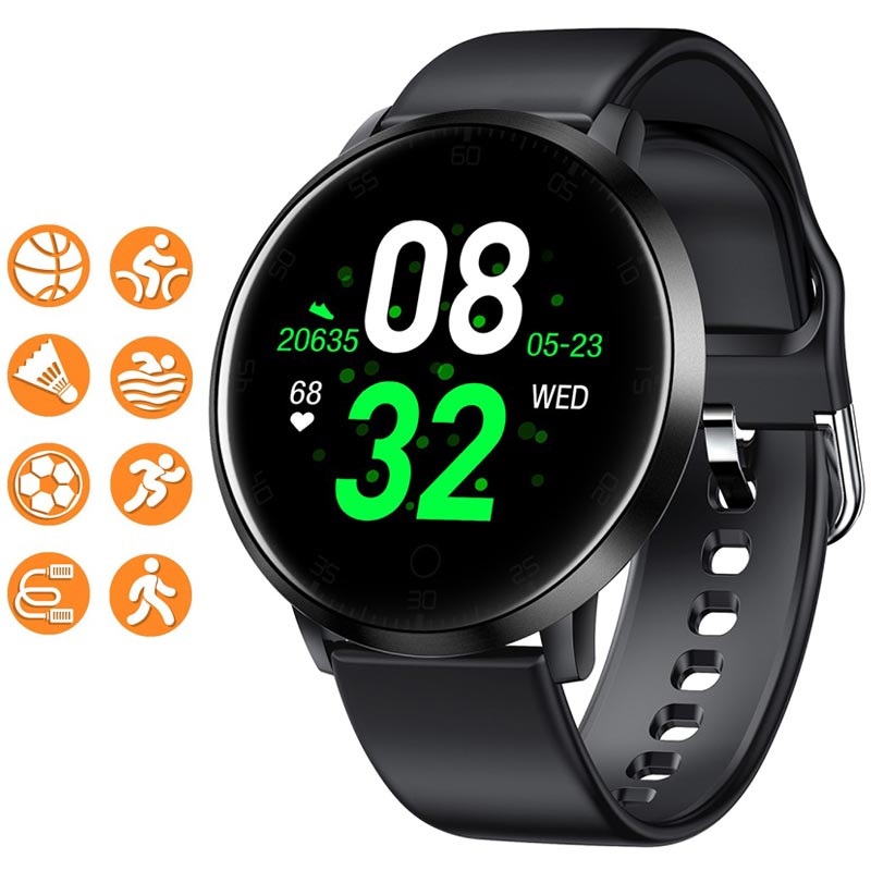 Lebe ein gesünderes Leben und halte deine Höchstform! Die K12 smartwatch ist ein ideales Alltags- und Nacht-Tragegerät. Ein superschlankes Metallgehäuse mit Silikonarmband macht es ideal für elegante und sportliche Anlässe.