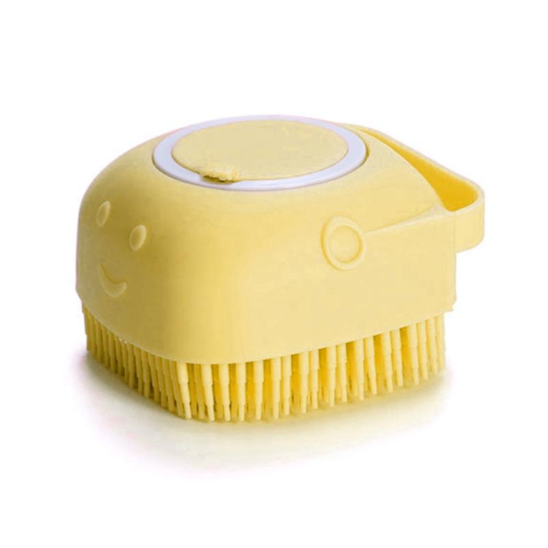 Weiche Hunde-/Katzenbadbürste mit Shampoo-Spender - Gelb