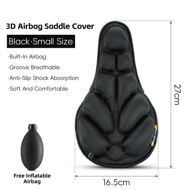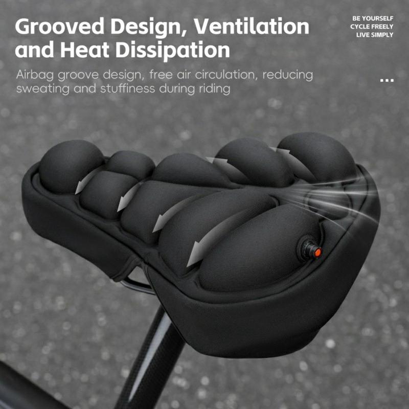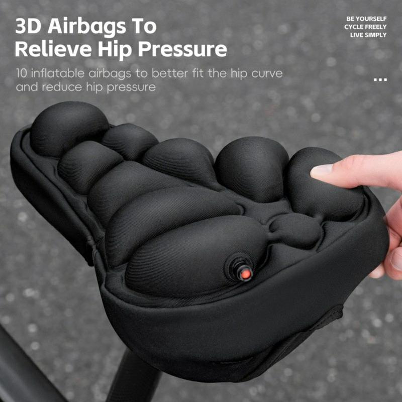 • West Biking YP0801259 3D aufblasbarer Luftkissen-Fahrradsattelbezug - verstellbares, druckentlastendes, stoßfestes Sattelpolster mit Belüftung (27 cm x 16,5 cm)
