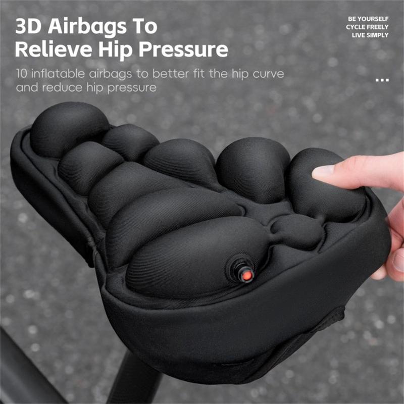 • West Biking YP0801260 3D aufblasbarer Luftkissen-Fahrradsattelbezug - verstellbares, druckentlastendes, stoßfestes Sattelpolster mit Belüftung (28 cm x 22 cm)