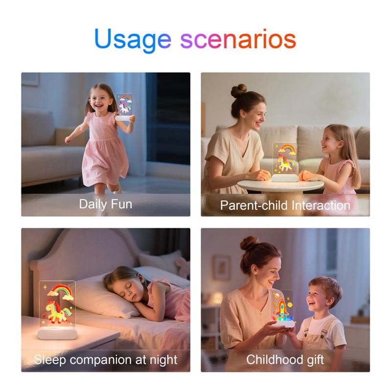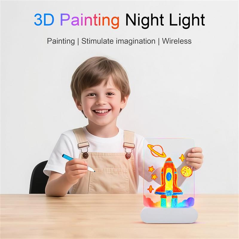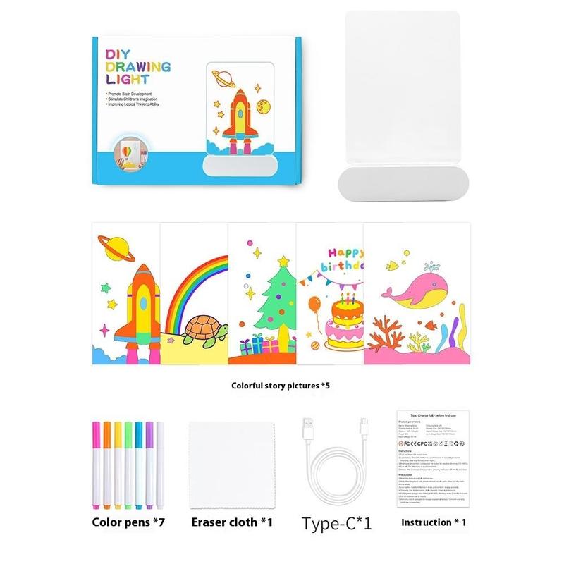 Wiederaufladbare, löschbare LED-Zeichentafel mit 7 Farbstiften - 3D-Acryl-Zeichnung & Memo-Nachtlicht