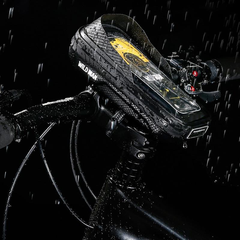 Wild Man E16 Fahrradvorbau-Aufbewahrungstasche - Hartschalen-Fahrradtasche aus EVA mit TPU-Touchscreen, wasserdicht, reflektierendes Logo