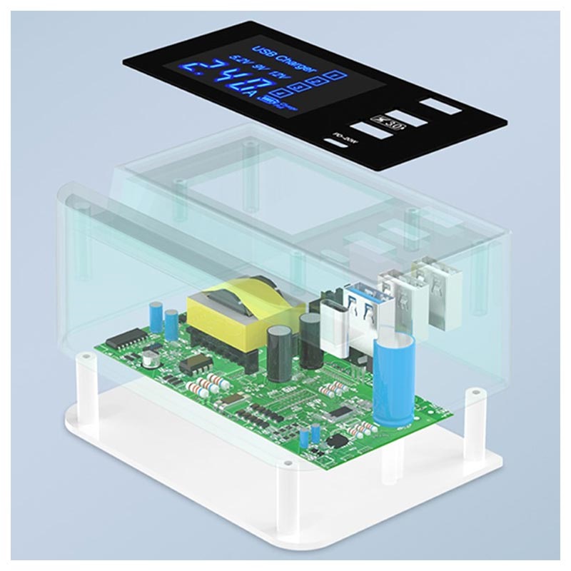 Ausgestattet mit drei USB-Anschlüssen (einer davon ist QC3.0) und einem USB-C PD 20W, können Sie verschiedene Geräte wie Smartphones, Tablets, Digitalkameras, GPS-Navigationsgeräte und mehr gleichzeitig aufladen. Machen Sie sich keine Sorgen um die Sicherheit, denn die Schnellladestation Win How Solution YC-CDA26D ist aus flammfestem V0-Material gefertigt, verfügt über ein hochwertiges Netzkabel und bietet mehrere Stromschutzstufen. Überprüfen Sie den Anschluss- und Spannungsstatus auf dem eingebauten LCD-Display, und verwenden Sie eine Telefonhalterung zum freihändigen Abspielen von Medien.