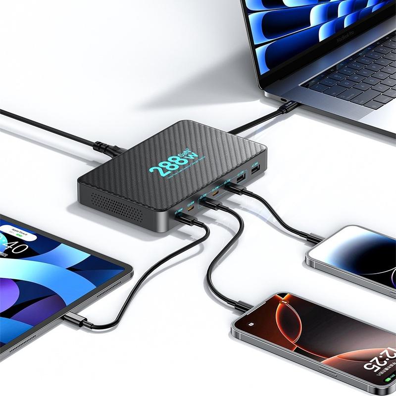 GaN-Ladegeräte verwenden Galliumnitrid-Komponenten, die Strom effizienter umschalten können als herkömmliche Silizium-Designs und so eine höhere Wattzahl in kleineren Gehäusen ermöglichen. GaN-Ladestationen mit mehreren Anschlüssen sind beliebt, weil sie Kabelsalat reduzieren, da sie das Laden zentralisieren und die Anzahl der benötigten Wandstecker minimieren. Einziehbare Kabel tragen ebenfalls dazu bei, den Kabelverschleiß zu reduzieren und den Arbeitsplatz besser zu organisieren.