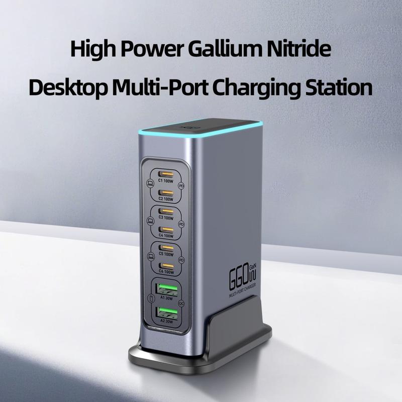 Ersetzen Sie einen Schreibtisch voller Ladegeräte durch einen einzigen leistungsstarken Hub. Die WLX-F8L GaN-Desktop-Ladestation wurde für komplexe Multi-Geräte-Setups entwickelt - zum gleichzeitigen Laden von Laptops, Tablets, Smartphones, Powerbanks, Kopfhörern und mehr. Mit sechs USB-C-Anschlüssen, die Power Delivery-Profile bis zu 20 V/5 A unterstützen, und zwei USB-A-Anschlüssen mit QC3.0 ist sie darauf ausgelegt, eine Vielzahl von Geräten schnell und effizient aufzuladen und gleichzeitig Ihren Arbeitsplatz aufgeräumter und organisierter zu halten.