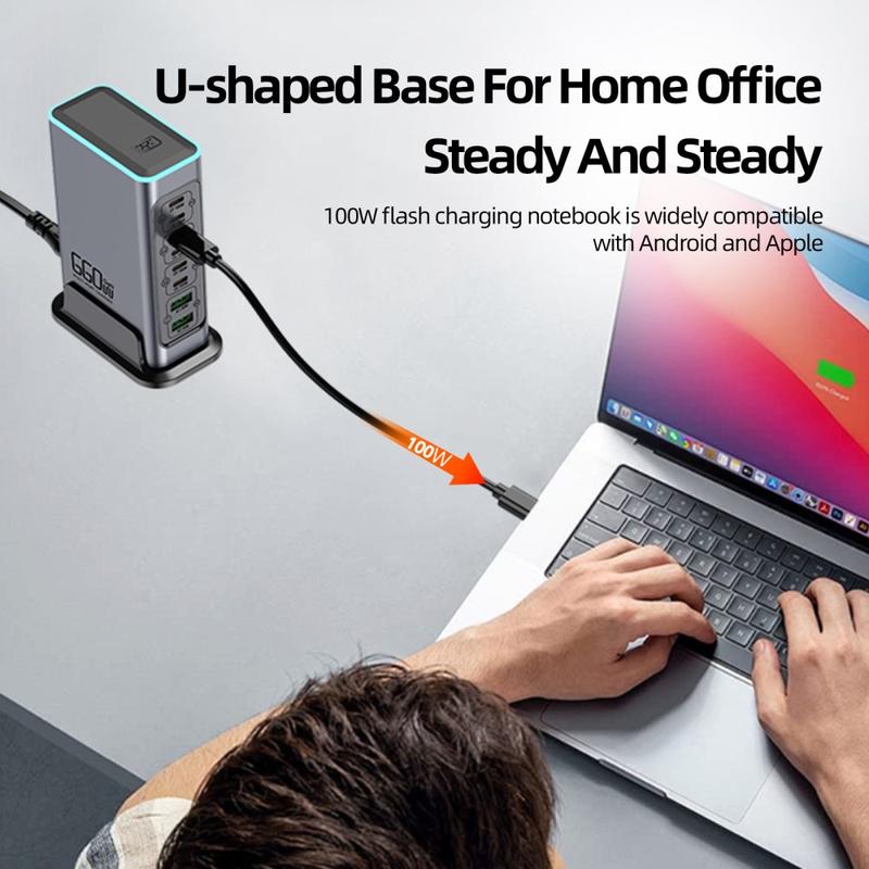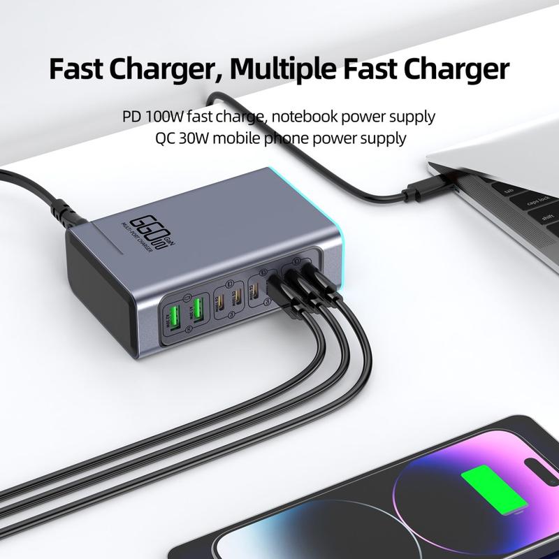 WLX-F8L 8-Port-GaN-Desktop-Ladestation 660W - 6xUSB-C PD, 2xUSB-A QC3.0, 100-240 V, kompakter Power Hub mit EU-Stecker