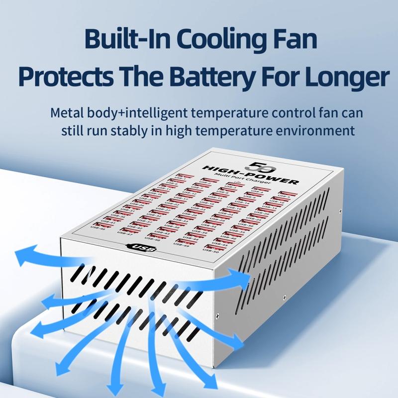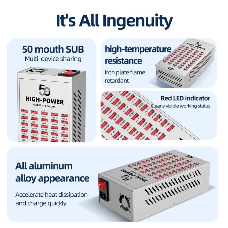 - 50 USB-Anschlüsse für das gleichzeitige Laden mehrerer Geräte in gewerblichen und industriellen Umgebungen