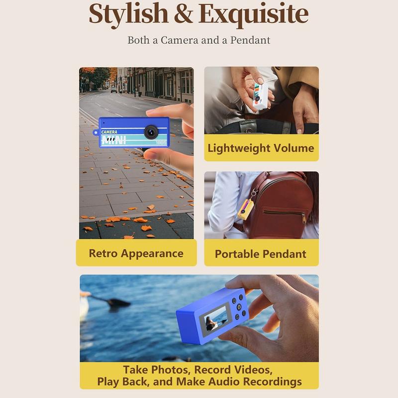 Halten Sie mit der Retro-Mini-Daumenkamera X7 überall schöne Momente fest. Diese leichte Digitalkamera im kompakten, taschenfreundlichen Format besticht durch ihren nostalgischen Stil und bietet gleichzeitig moderne 1080p-Full-HD-Aufnahmen. Der integrierte 0,96-Zoll-IPS-Farbbildschirm ermöglicht eine schnelle Vorschau und Wiedergabe, sodass Sie Fotos und Videos sofort überprüfen können.