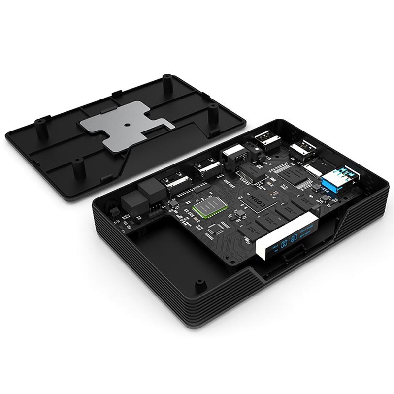 - Anschlüsse: HDMI 1.4-Eingang, HDMI 2.0a-Ausgang, USB 3.0, 2x USB 2.0, TF-Karte, RJ45, optisch, AV, DC 5V