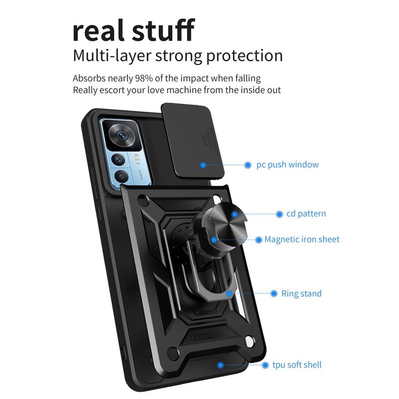 - Rotary Ring-Hybrid Hülle mit Kameraschutz für Xiaomi 12T, 12T Pro, Redmi K50 Ultra