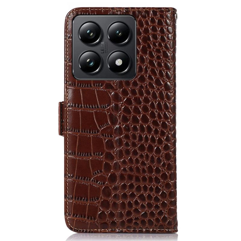 Crocodile Serie Lederhülle mit Geldbörse mit RFID für Xiaomi 14T Pro