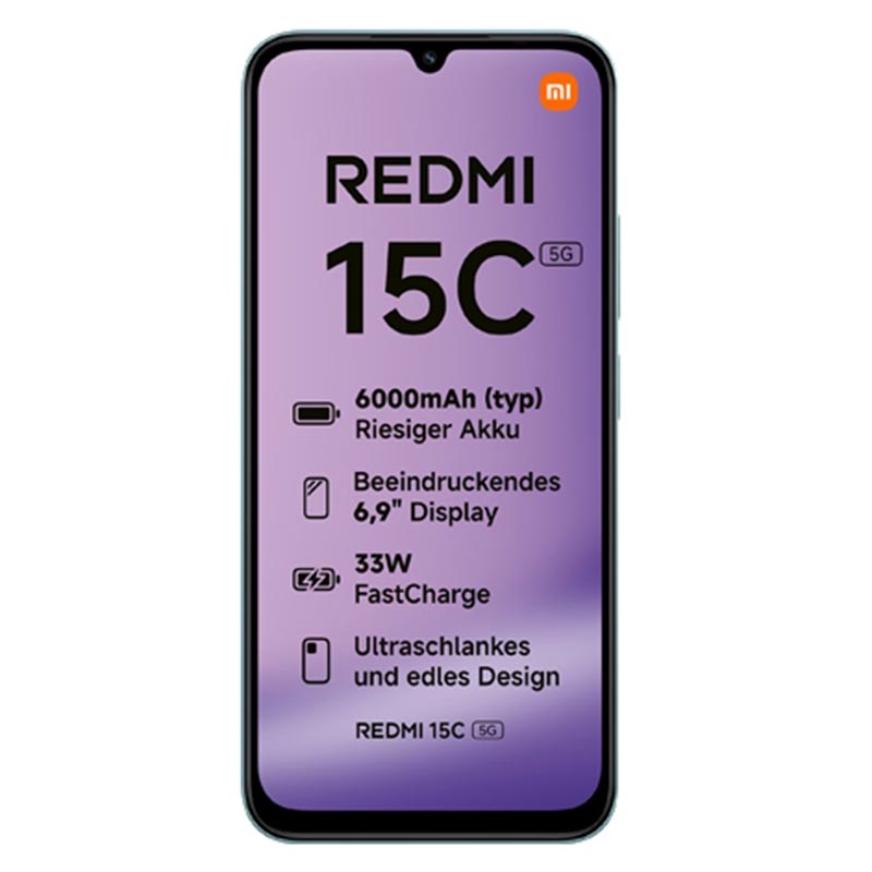 Das Xiaomi Redmi 15C 5G verfügt über ein großes 6,9-Zoll-Display mit einer adaptiven Bildwiederholfrequenz von 120 Hz, das eine flüssige und reaktionsschnelle Darstellung für tägliche Aufgaben, Videostreaming und Webbrowsing bietet. Das 50-MP-KI-Dual-Kamera-System fängt gestochen scharfe, lebendige Bilder ein, die alltägliche Momente in hoher Detailgenauigkeit festhalten. Ausgestattet mit dem MediaTek Helio G81-Ultra Octa-Core-Chipsatz liefert es den ganzen Tag über eine reibungslose und effiziente Leistung ohne Verlangsamungen. Der leistungsstarke 6000-mAh-Akku sorgt für eine lange Nutzungsdauer und unterstützt 33-W-Turboaufladung für schnelles und bequemes Aufladen, wo immer Sie sind.
