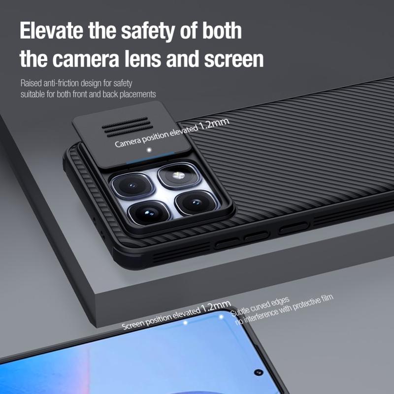 Genießen Sie zusätzliche Privatsphäre und Schutz mit der CamShield Pro-Hybridhülle von Nillkin. Durch die Kombination von starrem Kunststoff und TPU verhindert die Kameraabdeckung Kratzer und schützt gleichzeitig Ihr Xiaomi Redmi K70 Ultra vor täglicher Abnutzung.