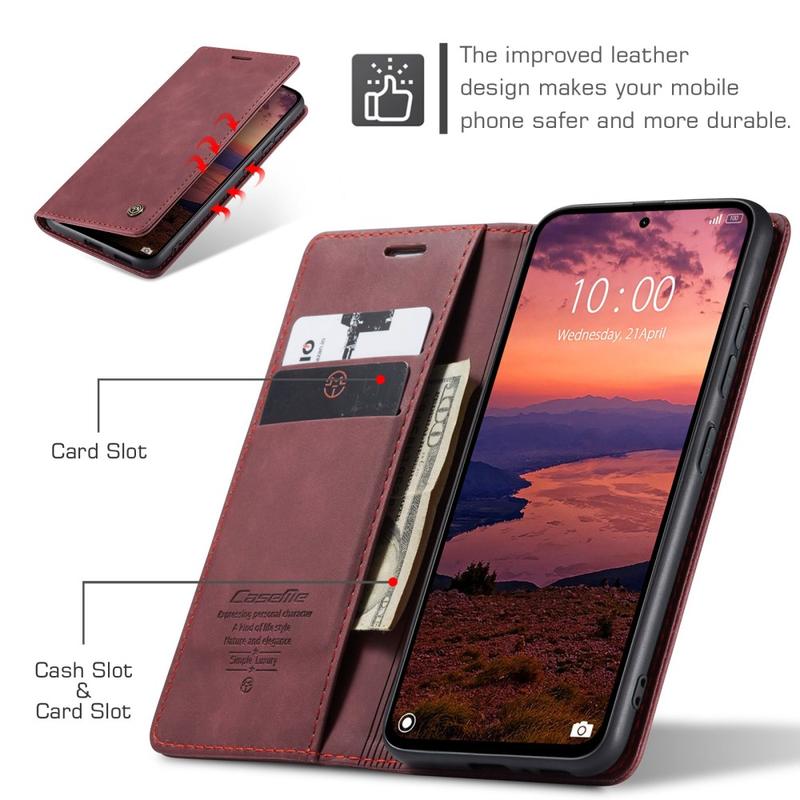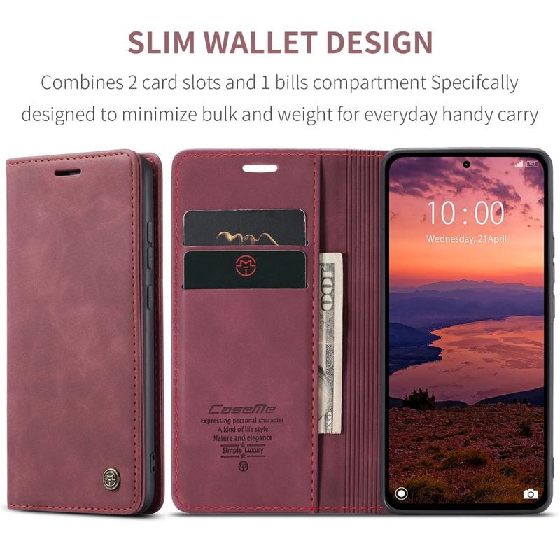 - Eingebaute Magnete halten die Caseme 013 Series Wallet-Hülle geschlossen